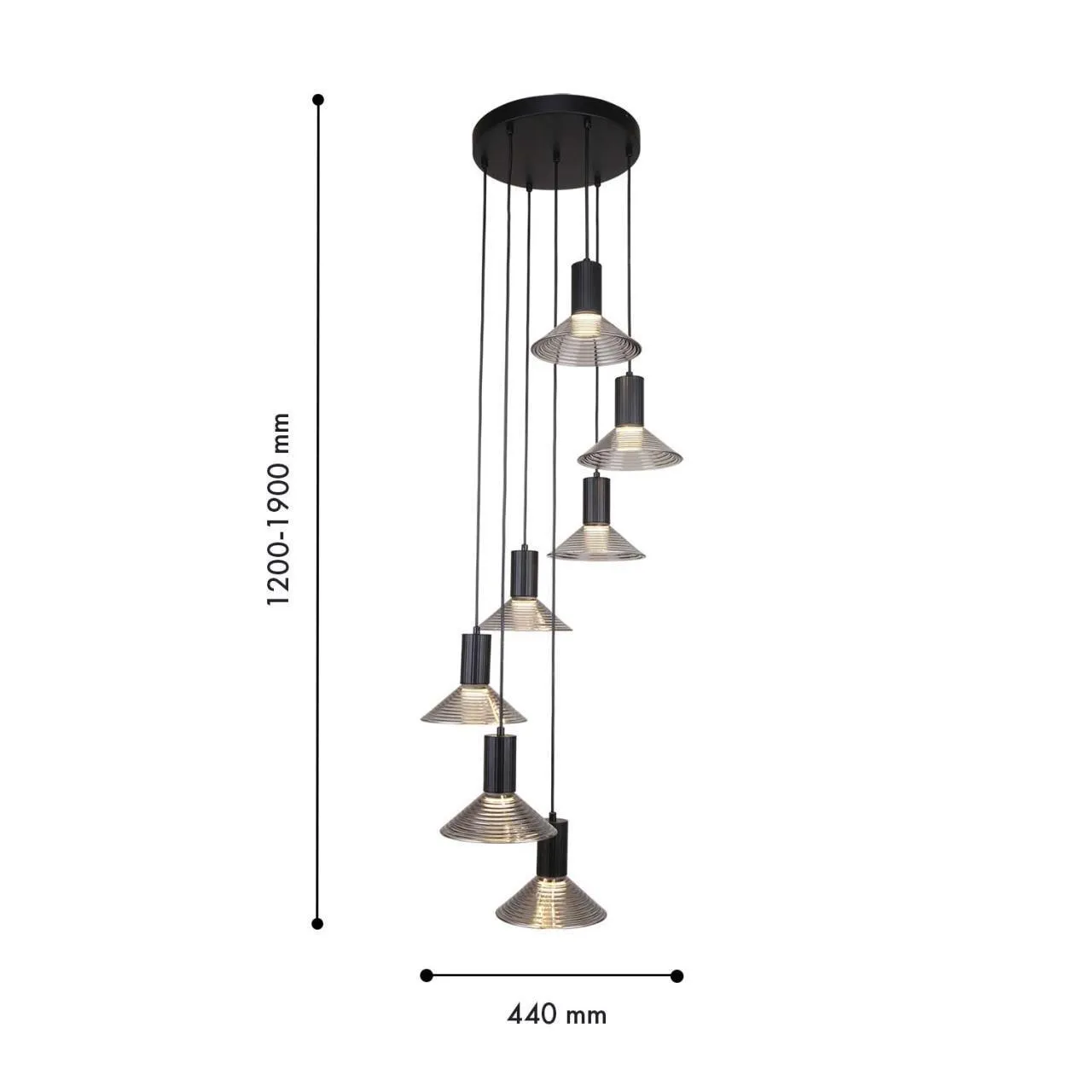 Каркас из металла черного матового цвета, плафоны из рифленого стекла, регулируемая высота, LEDмодуль.