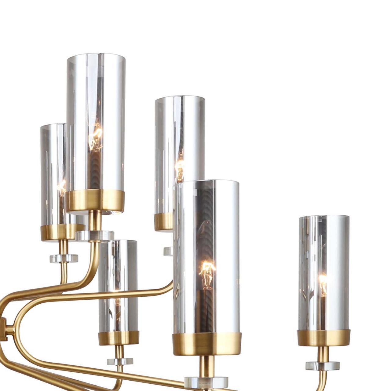 Каркас из металла бронзового цвета, удлиненные плафоны из зеркальносерого стекла с гальваническим покрытием, регулируемая высота, цоколь E14.
