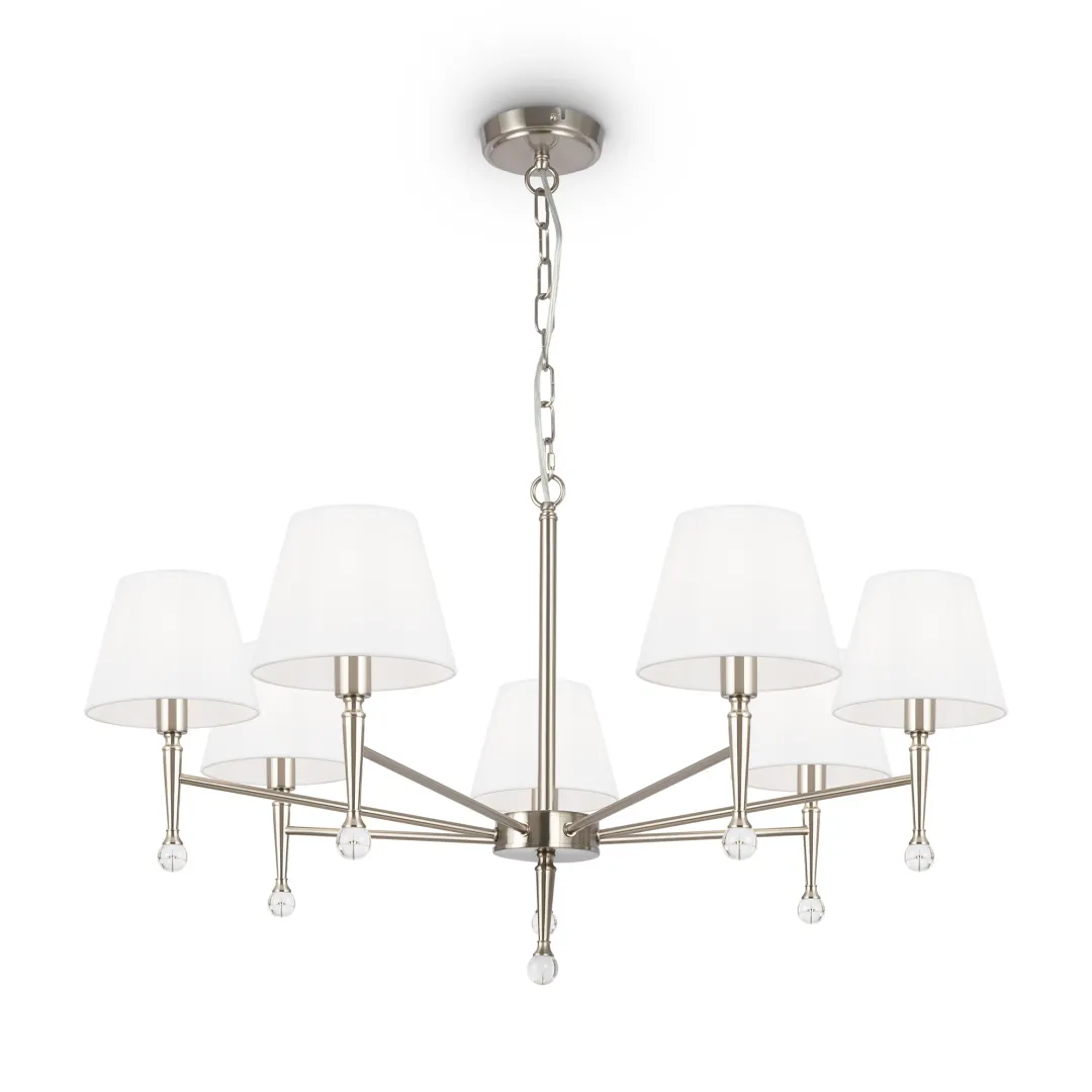 Элегантность и комфорт американской классики запечатлены в дизайне серии Rosemary. Сдержанный и визуально легкий силуэт металлической арматуры подчеркивается благородным оттенком латуни и никеля. Традиционную для классического стиля симметрию разбавляют декоративные капли из прозрачного хрусталя. Преломляя лучи света, они дарят радужные блики и освежают композицию. Абажуры из красивой текстурированной ткани завершают лаконичный и изящный образ. Они представлены в двух оттенках: белом и черном. Широкий ассортимент серии включает люстры на 5, 7 и 12 ламп, а также настольный светильник, торшер и бра. Это готовый комплексный ансамбль для общей и зональной подсветки гостиных и спален, выполненных в лучших традициях современной классики.