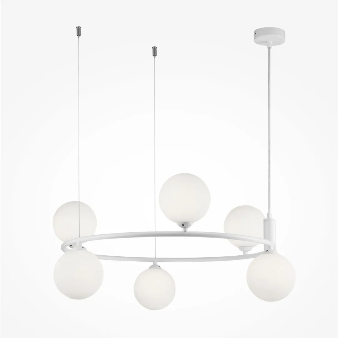 Простые и визуально легкие светильники серии Ring позволят без усилий организовать общую подсветку интерьера. На округлом металлическом каркасе располагаются плафоны из выдувного матового стекла. Модели серии представлены в различных формах и палитрах. Арматура нейтрального белого, черного цвета, а также оттенка латуни легко дополнит любое цветовое решение интерьера. Высоту подвесных светильников на 6, 4 и 2 плафона возможно отрегулировать длиной тросов и провода.