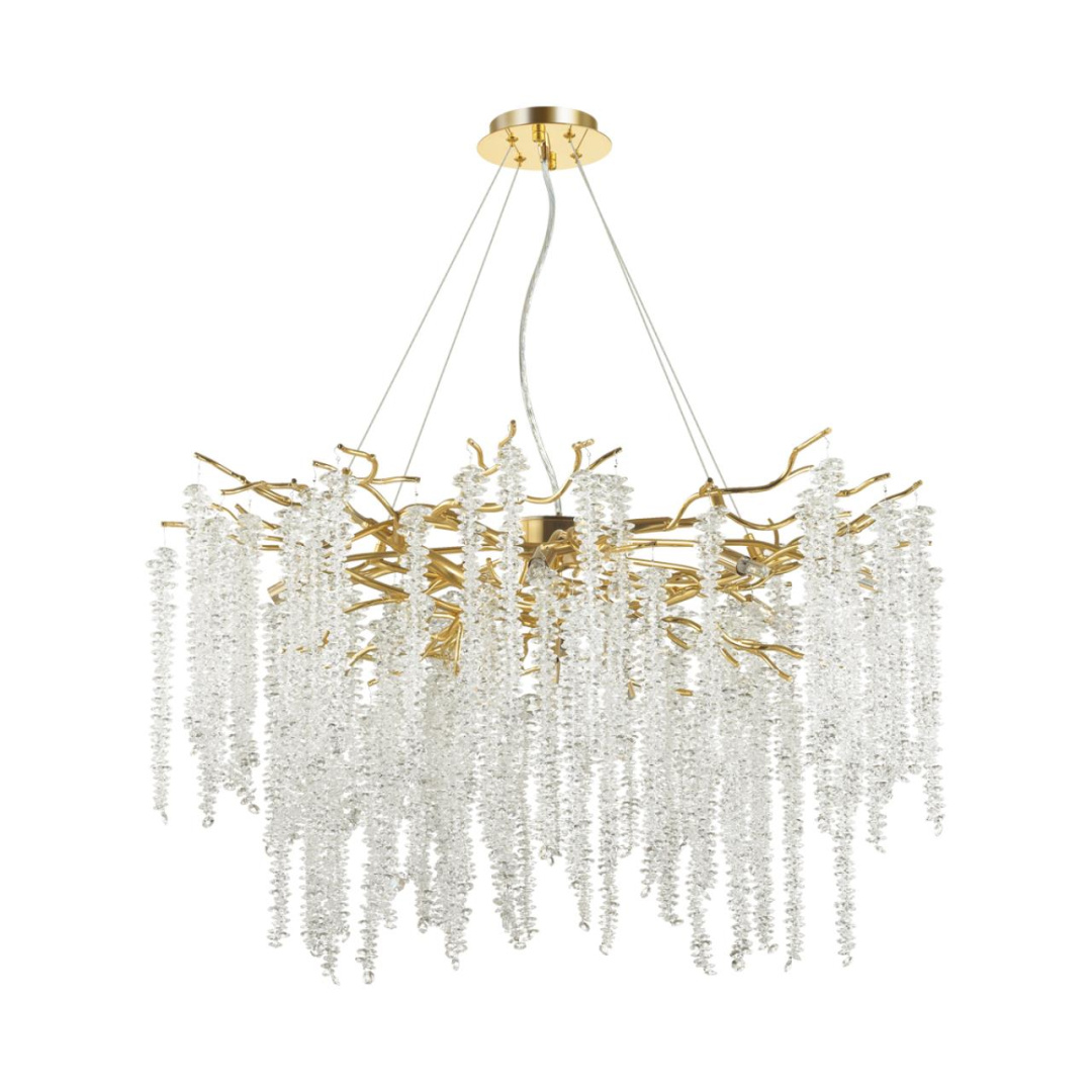 Линия Banche — это природные мотивы, изящество линий и многообразие форм, выраженных в моделях люстр и настенных светильников. Множество свисающих подвесок из плотно нанизанных переливающихся хрустальных бусин, словно «сережки» на изогнутых ветвях плакучей ивы. Арматура в золотом цвете выполнена из алюминия. Аккуратная точечная сварка фиксирует соединения. Ручным способом можно формировать «крону» люстр и бра, подгибая и выпрямляя ветви. В линии есть потолочная и подвесная круглые люстры, овальная люстра и бра. Популярная сейчас овальной формы модель предназначена для размещения над обеденной зоной.