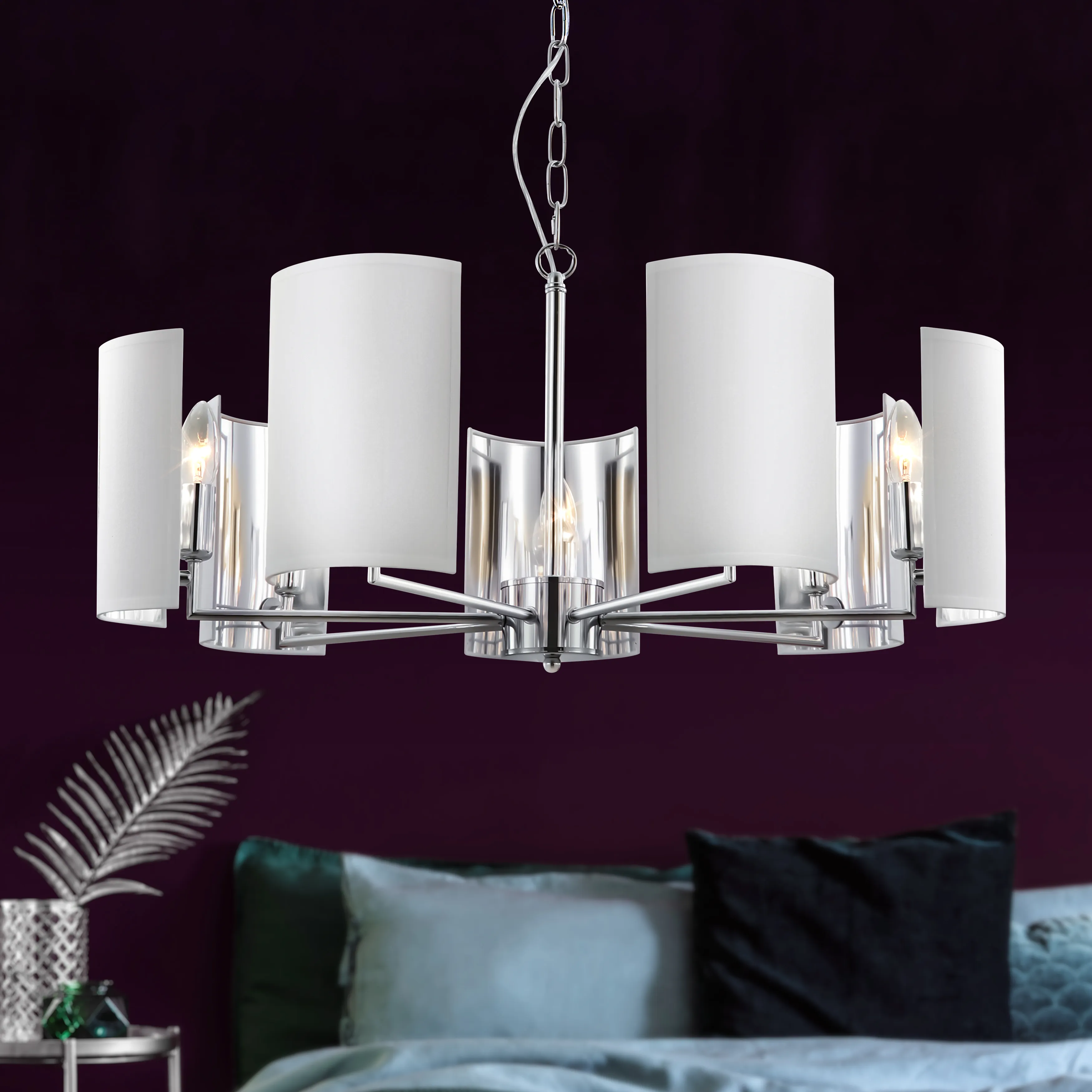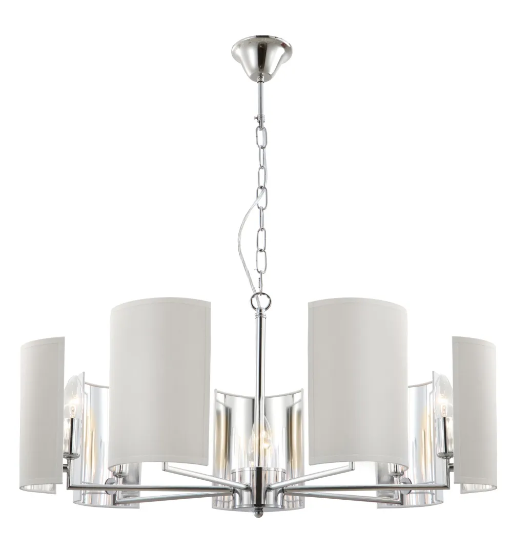 <p>Люстры потолочные подвесные Rivoli Asura отличаются лаконичностью форм арматуры. Подвес наполовину состоит из цепочки, убирая звенья которой, можно регулировать высоту люстры. Прямоугольные плафоны обтянуты специальной тканью, устойчивой к выцветанию и загрязнениям. Лампы расположены по кругу, что даёт помещению много света.</p>