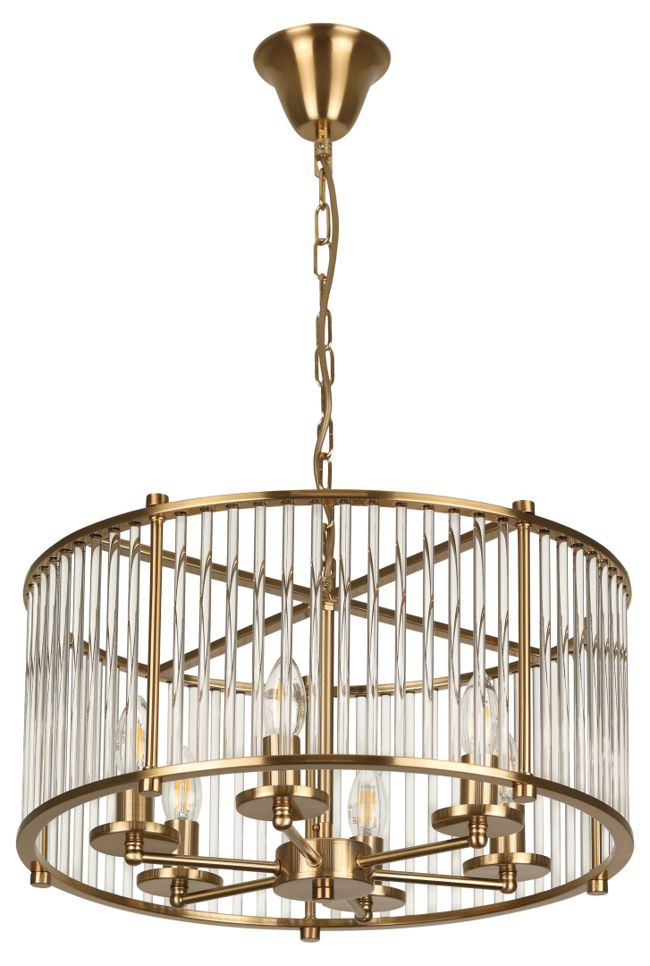 Оригинальная люстра Rivoli Erin (арт. 4112-306) под 6 ламп Е14 40 Вт. Дизайнерская люстра на штанге с кольцевым металлическим плафоном своим оформлением отсылает к средневековым замковым мотивам, объединяет в себе брутальность и утончённость, выглядит свежо и современно.