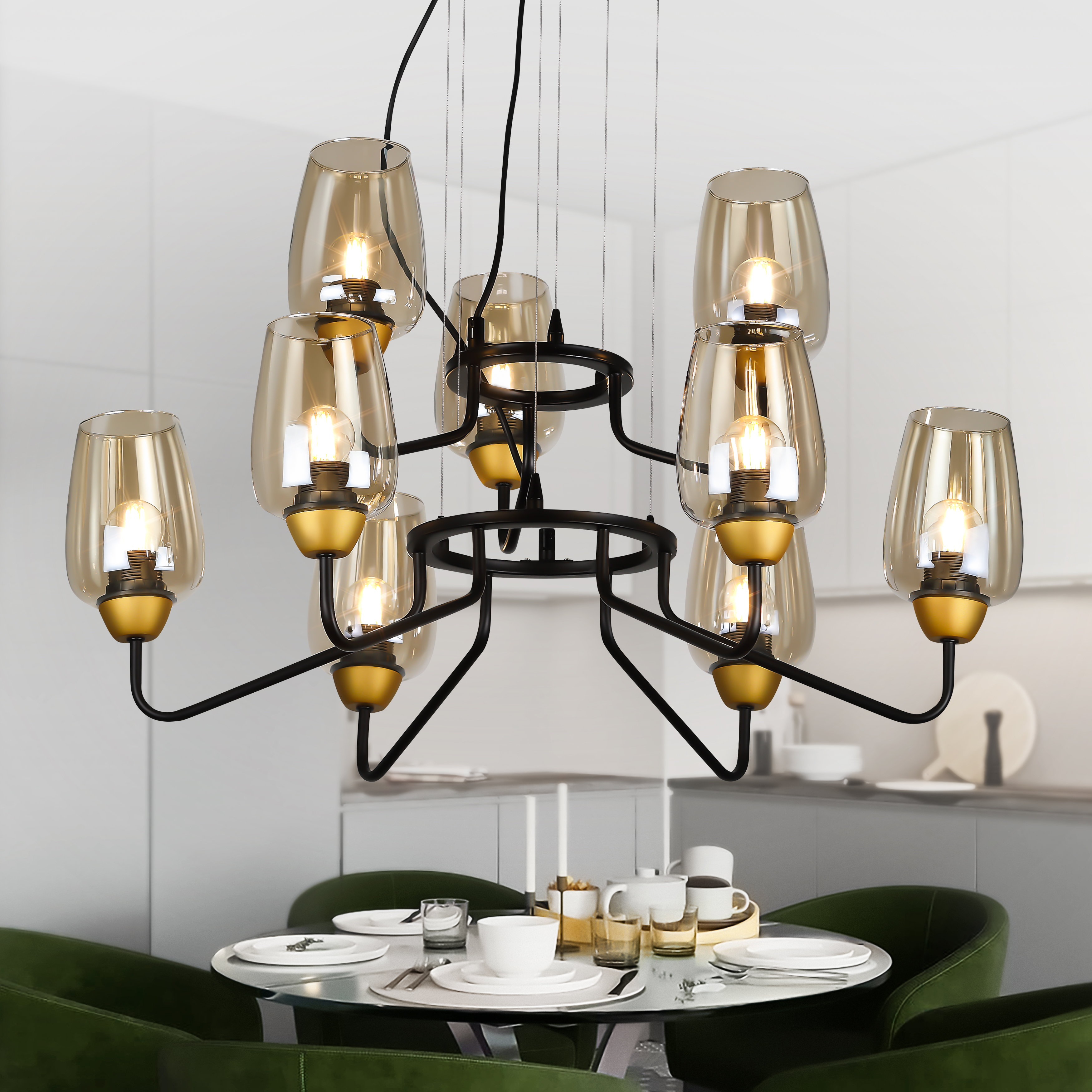 Древние греки верили, что Гера сохранит их домашний очаг и поддержит верность в семье. Бутонообразные плафоны с лёгким тонированием бережно заключат лампы в стеклянные объятия, а металлическая чёрная арматура в лофт-исполнении создаст эффект надёжности и защиты от всех невзгод. Коллекция представлена 9-ти рожковой подвесной люстрой.