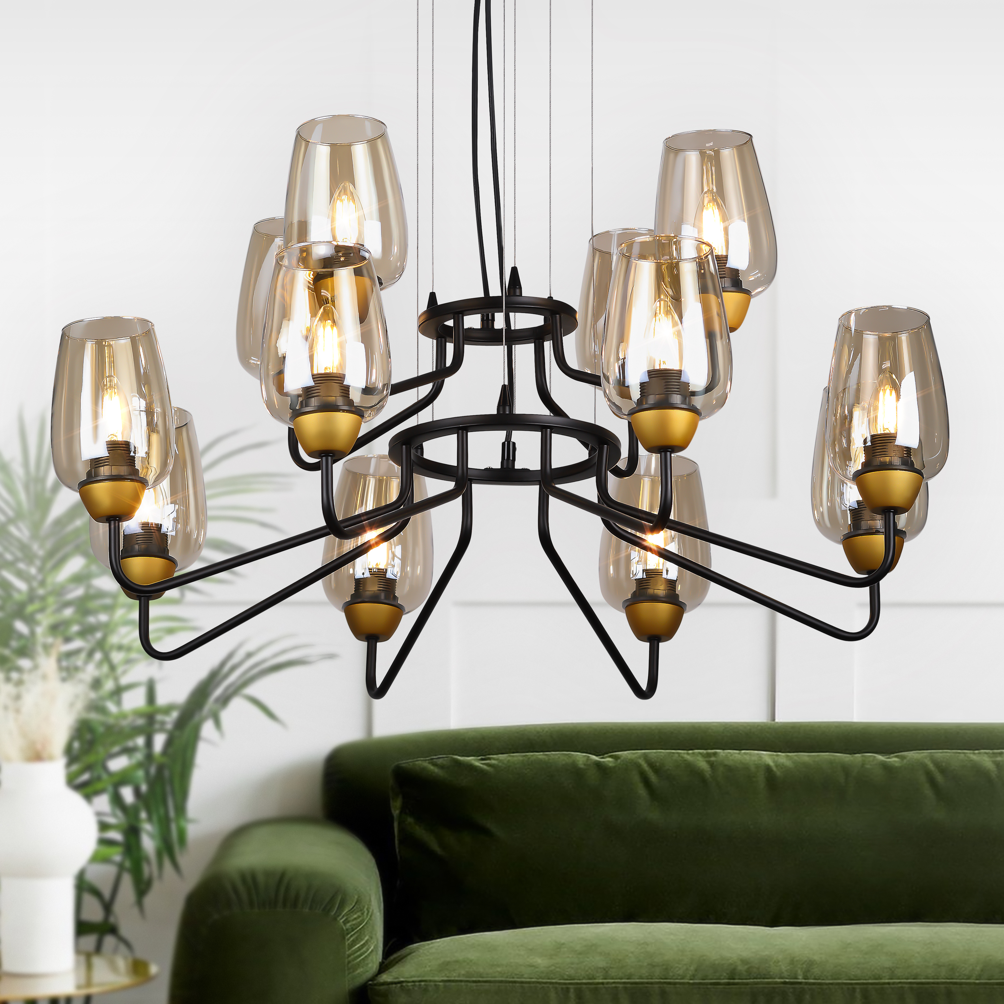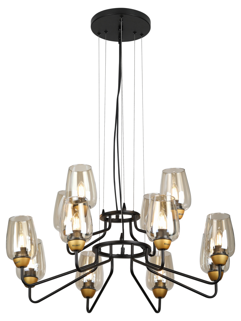 Древние греки верили, что Гера сохранит их домашний очаг и поддержит верность в семье. Бутонообразные плафоны с лёгким тонированием бережно заключат лампы в стеклянные объятия, а металлическая чёрная арматура в лофт-исполнении создаст эффект надёжности и защиты от всех невзгод. Коллекция представлена 12-ти рожковой подвесной люстрой.
