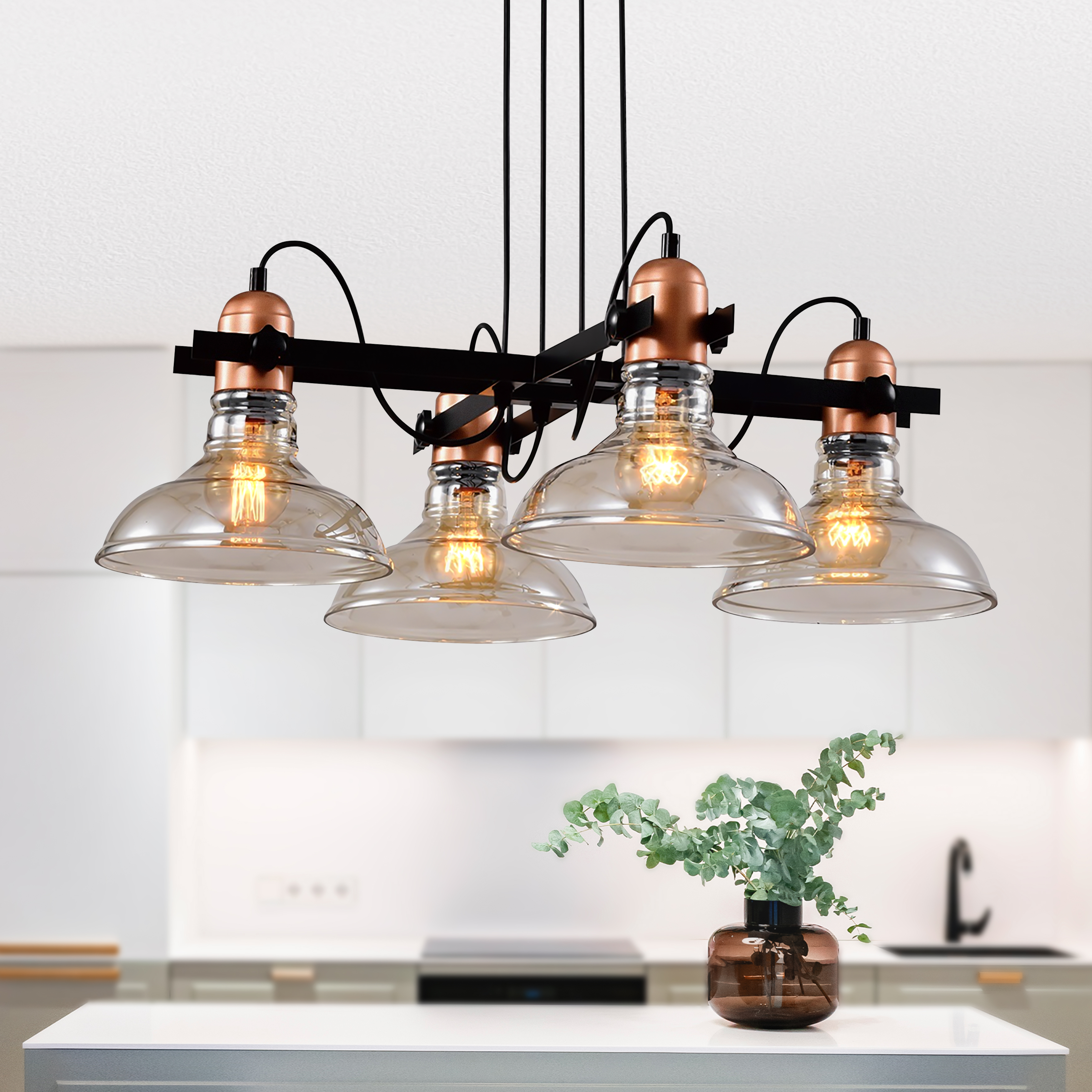 Люстра Leila подходит на высокий потолок или потолок средней высоты. Дизайн люстры дает отсылку к уличным ретрофонарям. Плафоны из качественного закаленного стекла тонированы в мягкий теплый оттенок, что делает свет от люстры более уютным. 4 дизайнерских плафона расположены на перекрестных металлических рейках. Люстры потолочные Leila Rivoli выглядят эффектно с любой стороны - сбоку, снизу. Удачное решение - разместить такие люстры над столом. В то же время подвесные светильники Leila подходят и в качестве основной люстры в комнате, освещая 12 м2.