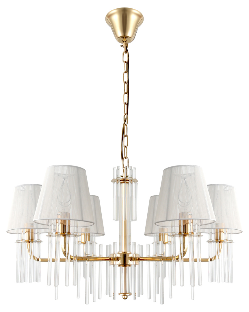 Rivoli Lilith - большая подвесная люстра в стиле современная классика. Итальянская коллекция Lilith Rivoli, в которую входят люстры потолочные под 6 и 8 ламп (арт. 1039-306, 1039-308) и настенное бра (арт. 1039-401), изготовлена из высококачественного легкого металла и декорирована удлиненными стеклянными колбами.