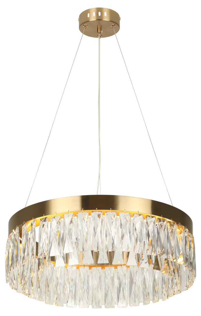 Регулируемая высота подвеса, максимальная длина которого составляет 800 см, позволяет адаптировать люстру под любые помещения, от высоких потолков до более уютных пространств. Несмотря на свой классический стиль, люстра органично вписывается и в современные интерьеры, добавляя им нотку изысканности и шарма.