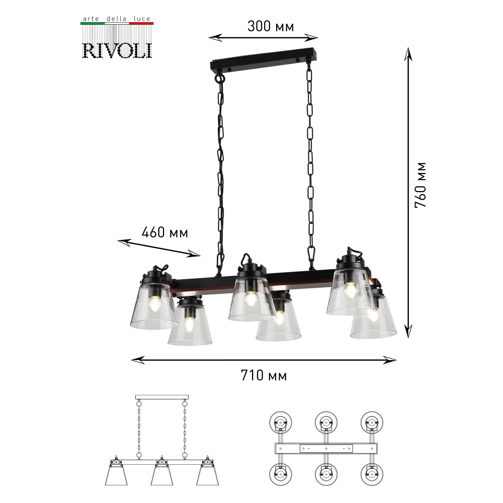 Rivoli Spartacus итальянская коллекция современных люстр из дерева, металла и стекла. Такие люстры помогут создать эффектный интерьер в стиле лофт, кантри. Данная модель имеет 6 стеклянных плафонов под лампы Е27 60 Вт. Высота подвеса люстры на потолок Spartacus регулируется.