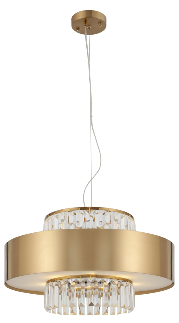 Rivoli Vickie (арт. 1051-306) — эта элегантная подвесная люстра с хрустальными элементами станет истинным украшением любого интерьера, создавая атмосферу роскоши и изысканности. Её корпус выполнен из высококачественного металла с покрытием в благородном золотисто-медном цвете, что придает изделию стильный и современный вид. Прозрачные хрустальные подвески добавляют свету искрящегося блеска, создавая мягкое и волшебное сияние.