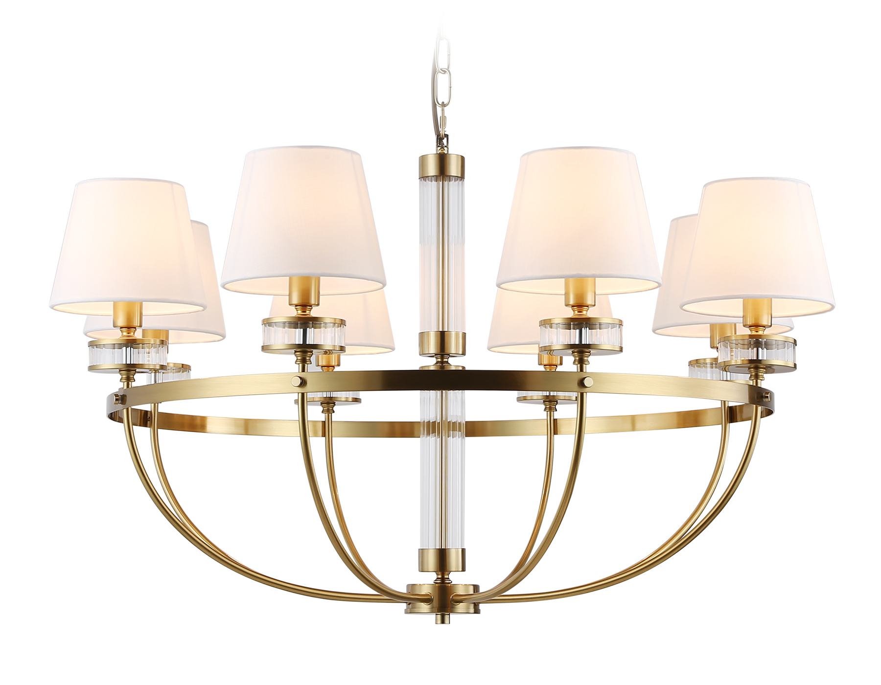 Подвесная люстра с абажурами из коллекции HIGH LIGHT. Модель LH71253 представлена в классическом стиле. Люстра выполнена из тканевых плафонов белого цвета, каркас изготовлен из металла цвета латунь. Для данной модели подойдут лампы с цоколем Е14. Люстра будет прекрасным дополнением в любом помещении.