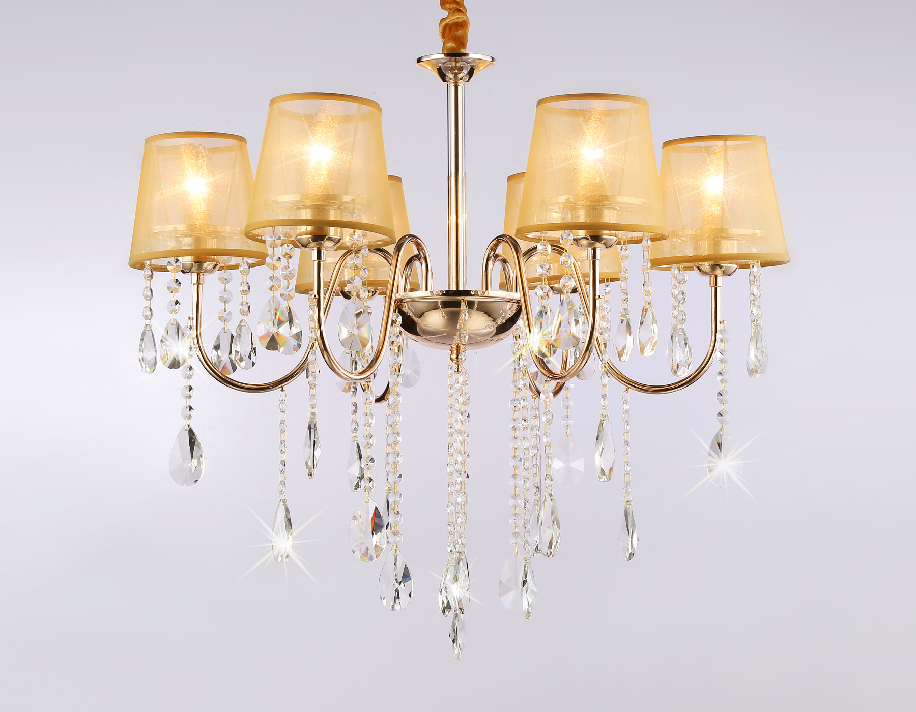 Подвесная люстра с абажурами из коллекции TRADITIONAL. Модель TR4589 представлена в классическом стиле. Люстра выполнена из тканевых плафонов золотого цвета и декорирована превосходным прозрачным хрусталем, каркас изготовлен из металла золотого цвета. Для данной модели подойдут лампы с цоколем Е14. Люстра будет прекрасным дополнением в любом помещении.