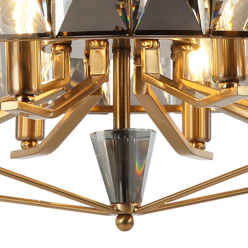 Люстра подвесная из коллекции Avenue выполнена из металла, гальванизированного в цвет бронзы, и декорирована дымчатым хрусталем высшей категории. Премиальное качество и неповторимыи? дизаи?н светильников идеально подои?дут как в классические, так и современные интерьеры.