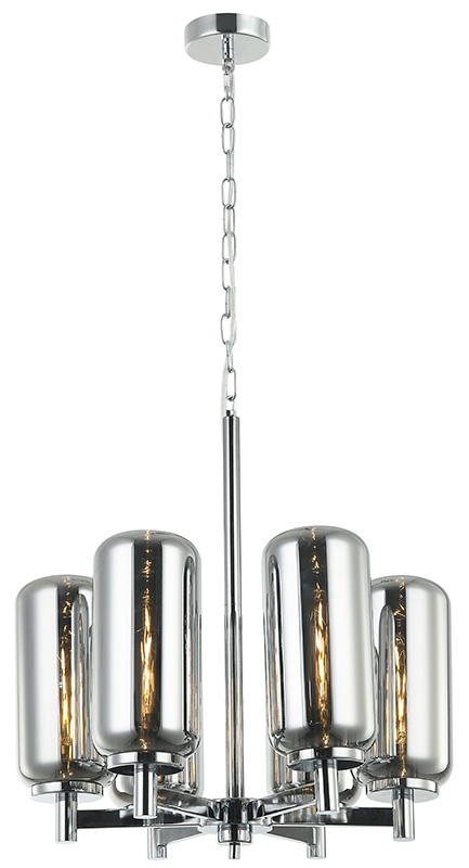 Люстра подвесная из коллекции Bauers выполнена из металла, гальванизированного в цвет хрома, и декорирована овальными вытянутыми плафонами дымчатого цвета. Плафоны устанавливаются за счет винтовой резьбы. Благодаря широкой арматуре люстра коллекции выглядит стильно и респектабельно. Премиальное качество и неповторимыи? дизаи?н светильников идеально подои?дут как в классические, так и современные дизайнерские интерьеры.