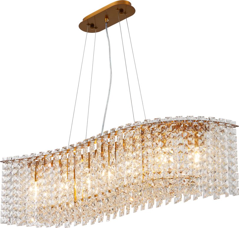 Люстра подвесная вытянутой формы из коллекции DELONE выполнена из металла, гальванизированного в цвет бронзы, и декорирована подвесками из прозрачного хрусталя в форме октагон. Светильники коллекции отличает оригинальный дизайн и дополнительный декор из хрусталя, закрывающий источники света снизу. Современная форма и высокое качество светильников идеально подойдут как в классические, так и современные интерьеры. Из данной коллекции светильников можно сделать индивидуальный заказ любого цвета и размера.