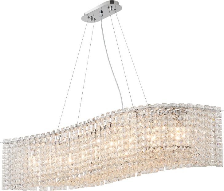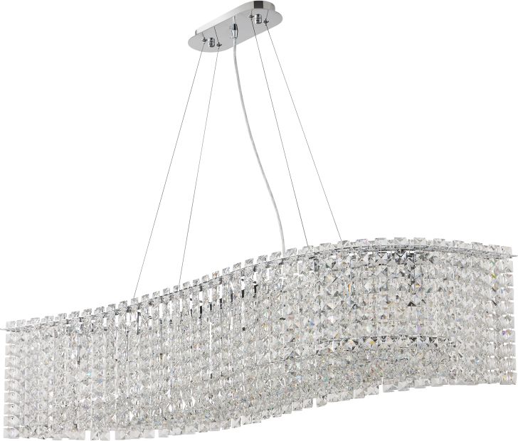 Люстра подвесная вытянутой формы из коллекции DELONE выполнена из металла, гальванизированного в цвет хрома, и декорирована подвесками из прозрачного хрусталя в форме октагон. Светильники коллекции отличает оригинальный дизайн и дополнительный декор из хрусталя, закрывающий источники света снизу. Современная форма и высокое качество светильников идеально подойдут как в классические, так и современные интерьеры. Из данной коллекции светильников можно сделать индивидуальный заказ любого цвета и размера.