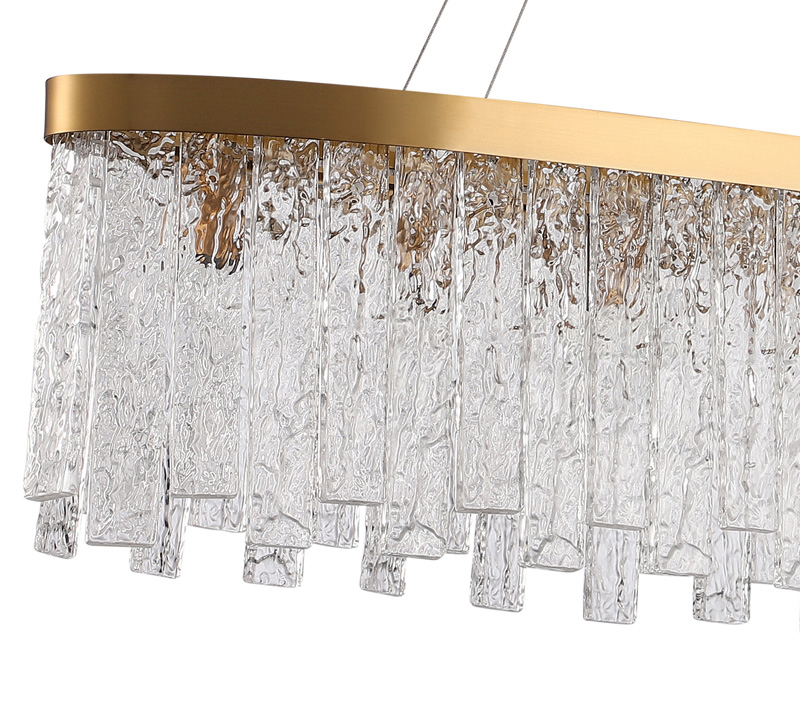 Люстра подвесная вытянутой формы из коллекции Frostyle выполнена из металла, гальванизированного в цвет бронзы, и декорирована высококачественным стеклом ручной работы, создающим эффект ледяной свежести. Современная форма светильников и высокое качество идеально подойдут как в классические, так и современные интерьеры.