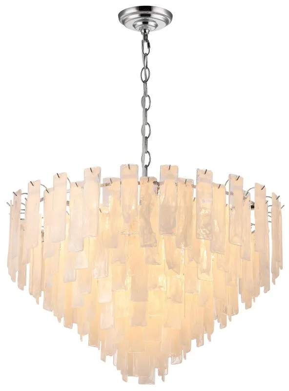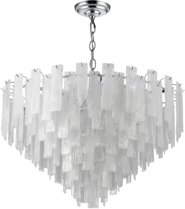 Люстра подвесная из коллекции Glowice выполнена из металла, гальванизированного в цвет хрома, и декорирована алебастровым стеклом, отлитым в индивидуальную форму и имитирующим лед.