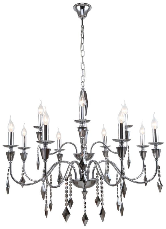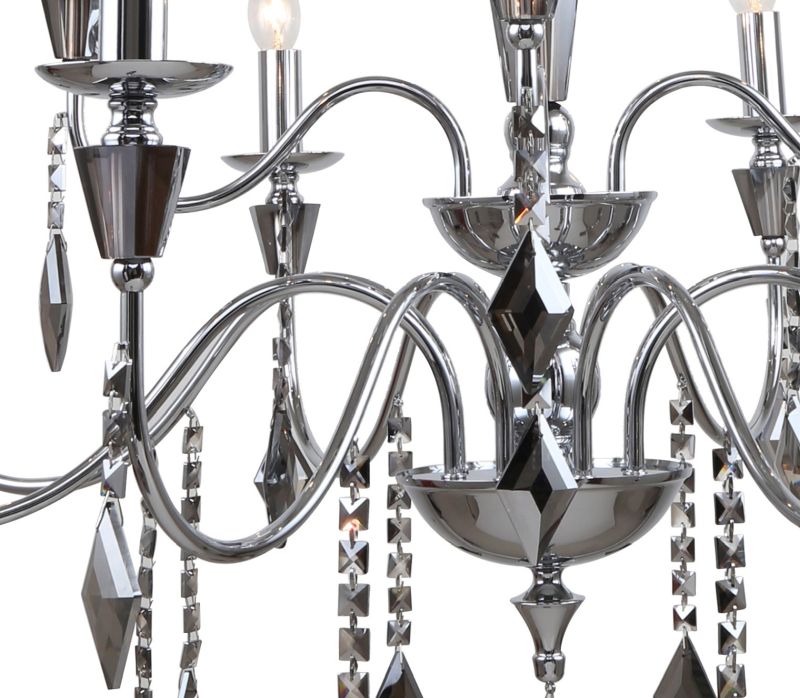 Люстра подвесная из коллекции Grace выполнена из металла, гальванизированного в цвет тонированного хрома, и декорирована массивами хрусталя и хрустальными подвесками в форме ромба цвета тонированного хрома. Премиальное качество и неповторимыи? дизаи?н светильников идеально подои?дут как в классические, так и современные интерьеры.