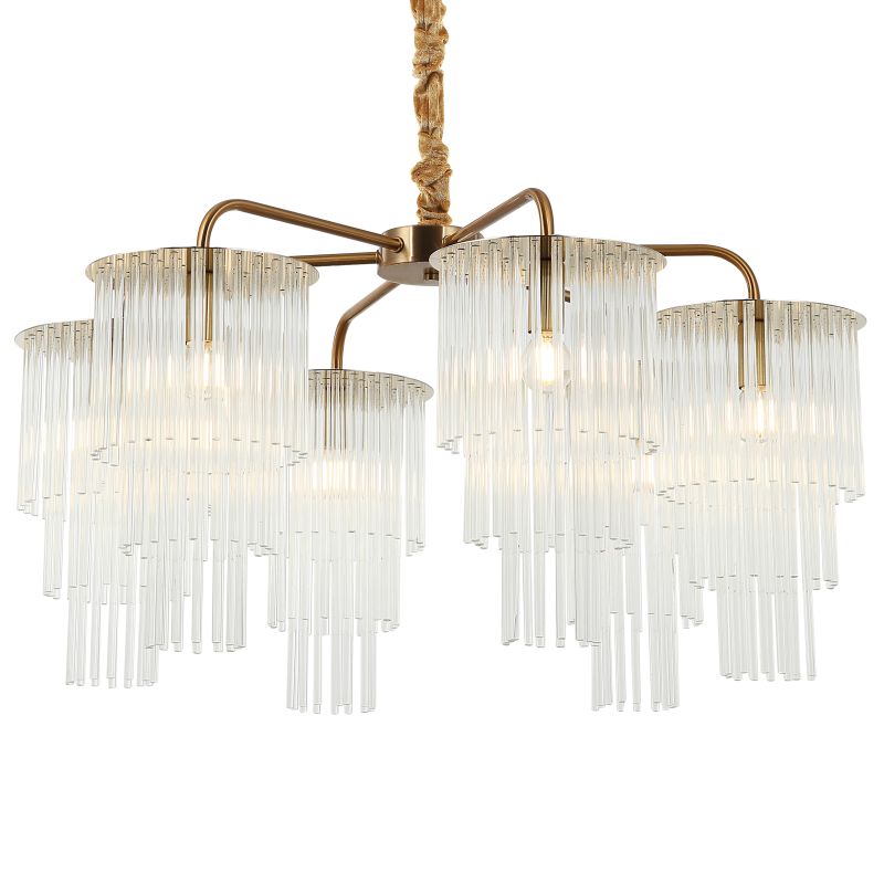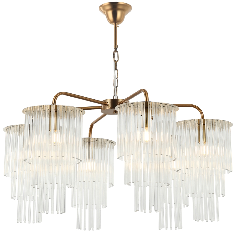 Люстра подвесная из коллекции Imposio выполнена из металла, гальванизированного в цвет бронзы. Декор из стеклянных прозрачных трубочек крепится на нержавеющую сталь, отполированную до зеркального блеска. Современная форма и высокое качество светильников идеально подойдут в современные и дизайнерские интерьеры.