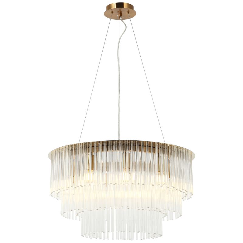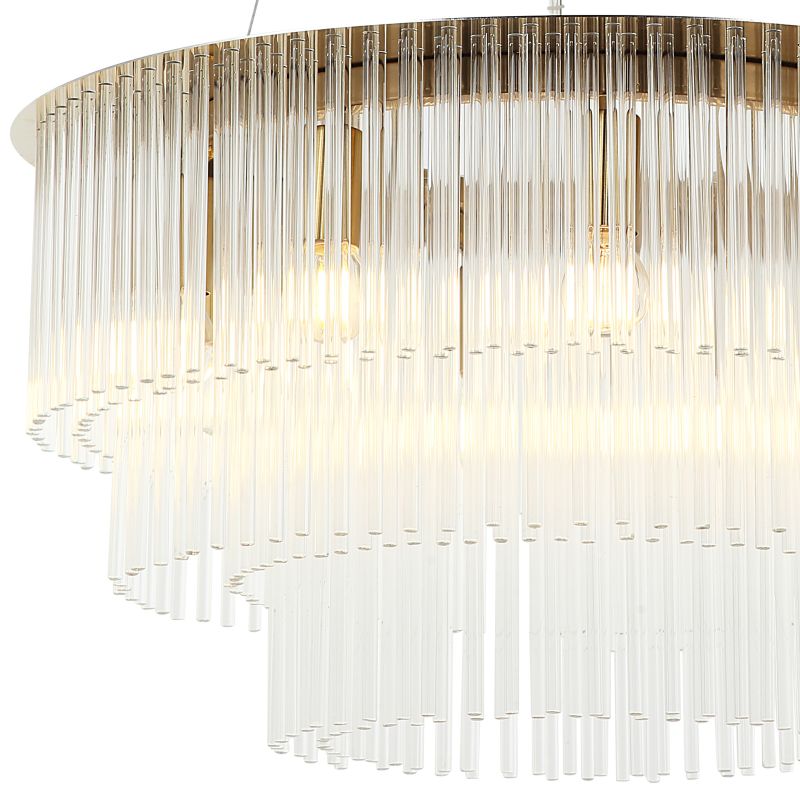 Люстра подвесная из коллекции Imposio выполнена из металла, гальванизированного в цвет бронзы. Декор из стеклянных прозрачных трубочек крепится на нержавеющую сталь, отполированную до зеркального блеска. Современная форма и высокое качество светильников идеально подойдут в современные и дизайнерские интерьеры.