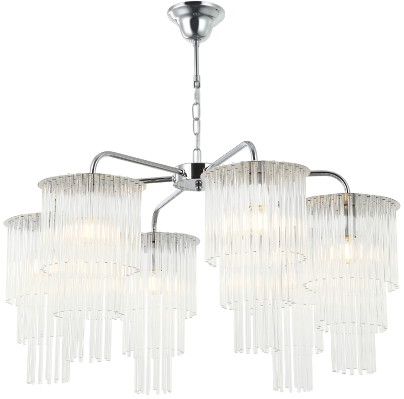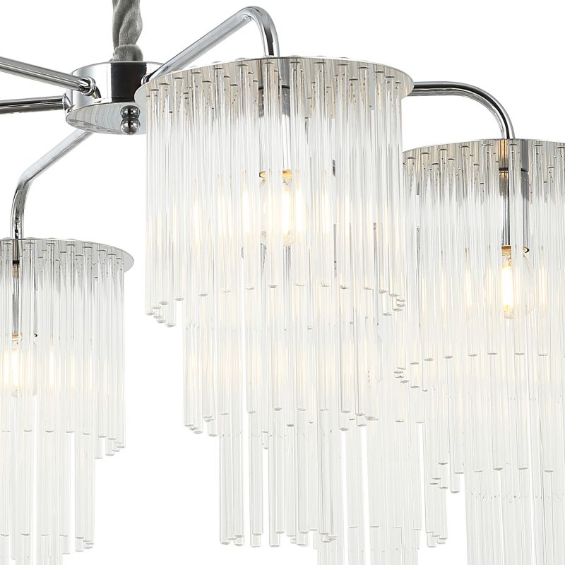 Люстра подвесная из коллекции Imposio выполнена из металла, гальванизированного в цвет хрома. Декор из стеклянных прозрачных трубочек крепится на нержавеющую сталь, отполированную до зеркального блеска. Люстра коллекции выглядит стильно и респектабельно. Современная форма и высокое качество светильников идеально подойдут в современные и дизайнерские интерьеры.