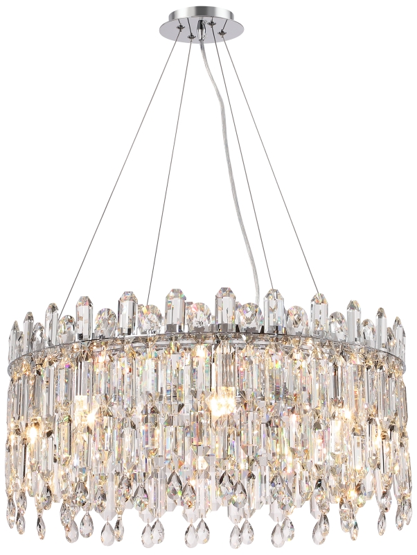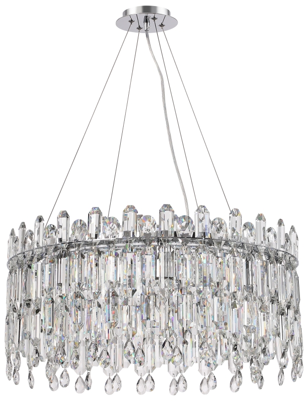 Люстра подвесная из коллекции Legacy выполнена из металла, гальванизированного в цвет хрома, и декорирована прозрачным хрусталем высшей категории вытянутой и округлой формы. Оригинальная форма хрусталя придает люстре утонченность и благородство.