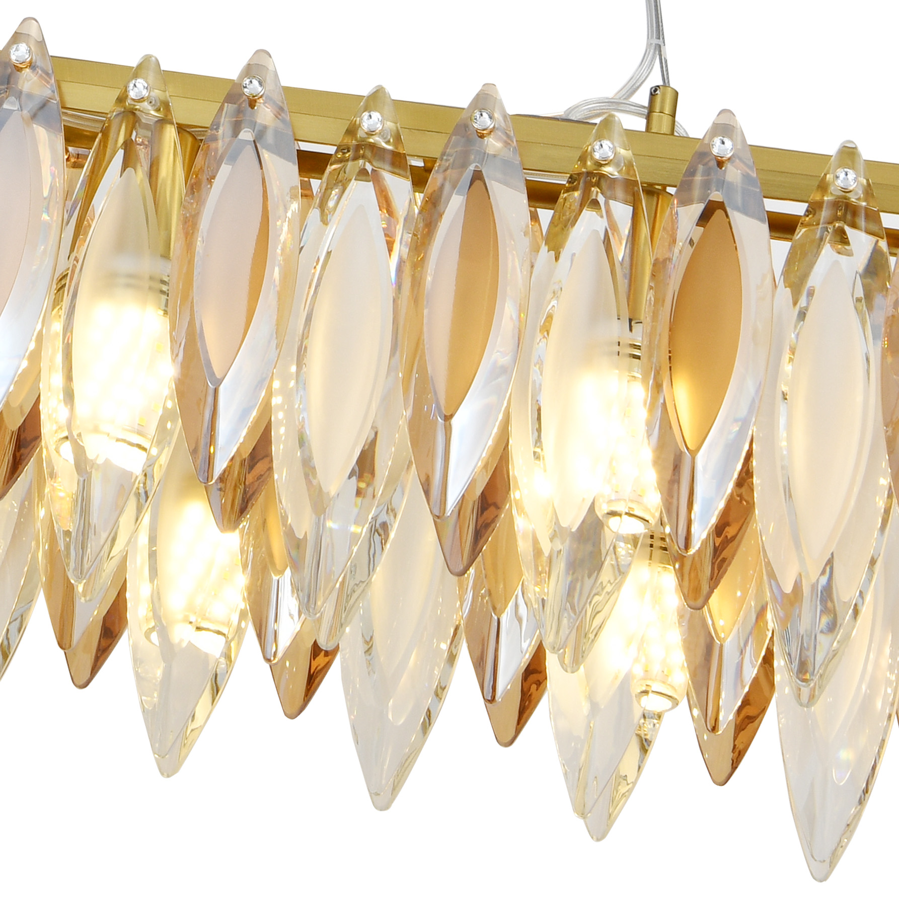Люстра подвесная вытянутой формы из коллекции New Ton выполнена из металла, гальванизированного в цвет бронзы, и декорирована комбинацией прозрачного и янтарного хрусталя вытянутой формы. Премиальное качество хрусталя высшей категории и неповторимый дизайн светильника идеально подойдут как в классические, так и современные интерьеры. Из данной коллекции светильников можно сделать индивидуальный заказ любого цвета и размера.