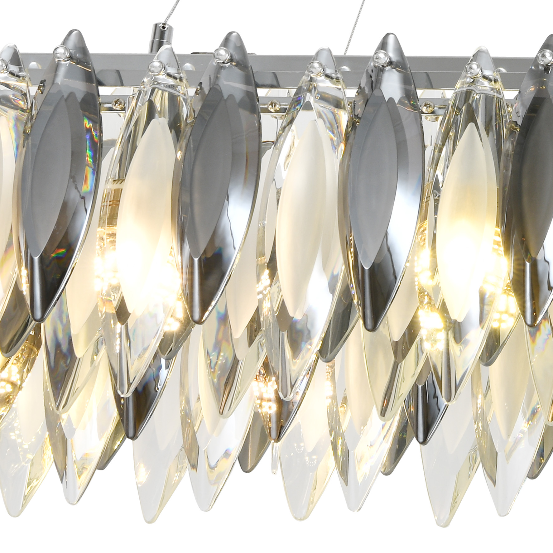 Люстра подвесная вытянутой формы из коллекции New Ton выполнена из металла, гальванизированного в цвет хрома, и декорирована прозрачным и дымчатым хрусталем вытянутой формы высшей категории. Премиальное качество и неповторимый дизайн светильника идеально подойдут как в классические, так и современные интерьеры. Из данной коллекции светильников можно сделать индивидуальный заказ любого цвета и размера.