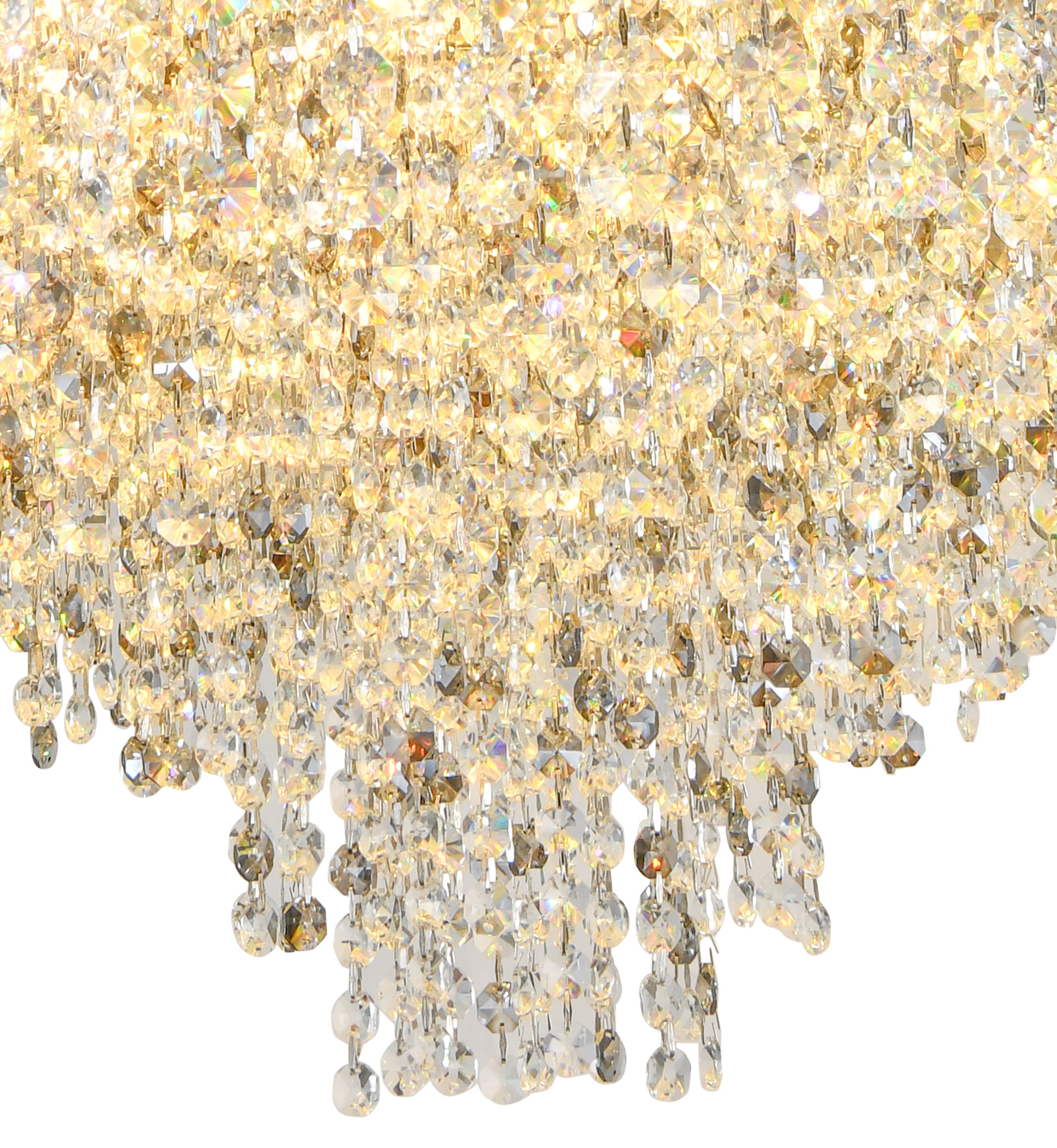 Люстра подвесная коллекции Rain of Crystal выполнена из металла, гальванизированного в цвет хрома, и декорирована прозрачным и дымчатым хрусталём высшей категории. Особенностью данной коллекции является возможность использовать её как в подвесном, так и в потолочном варианте. На верхней части люстры установлен декоративный лист из нержавеющей стали, отполированный до зеркального блеска, который скрывает технические элементы и позволяет устанавливать её в лестничных проёмах и помещениях со вторым светом. Высокое качество и неповторимый дизайн светильника идеально подойдут как для классических, так и для современных интерьеров. Из данной коллекции светильников можно сделать индивидуальный заказ любого цвета и размера.
