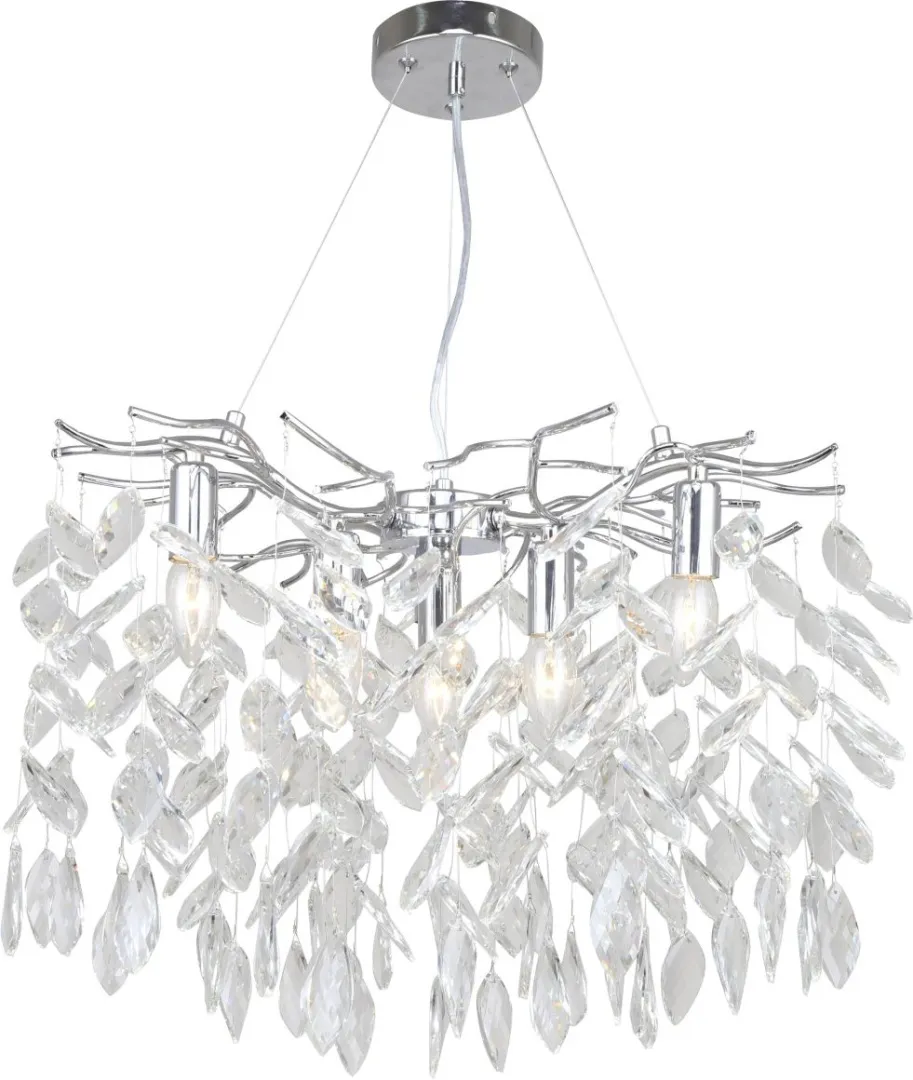 Люстра подвесная коллекции RAMO выполнена из металла, гальванизированного в цвет хрома, и декорирована гроздьями из хрусталя винтажной формы. Отличительной особенностью данной коллекции является ручное изготовление каркаса с дополнительной полировкой стыков арматуры и увеличенным количеством хрустальных подвесок (42 веточки по 5 кристаллов).
