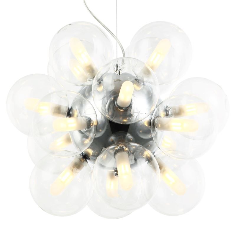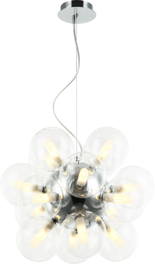 Люстра подвесная из коллекции Roxie выполнена из металла, гальванизированного в цвет хрома, и декорирована плафонами круглой формы из внутренних матовых и внешних прозрачных стекол. Современная форма и высокое качество светильников идеально подойдут как в классические, так и современные интерьеры.