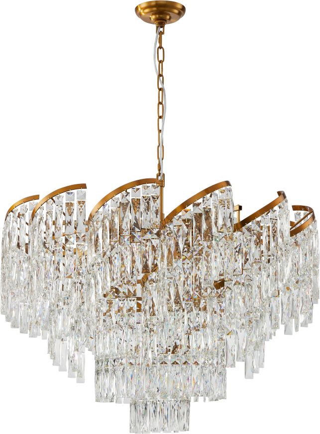 Люстра подвесная из коллекции Sapparo выполнена из металла, гальванизированного в цвет бронзы, и декорирована хрусталем вытянутой формы высшей категории. Хрусталь многослойно располагается на изогнутых металлических элементах в виде спирали. Современная форма и высокое качество светильников идеально подойдут как в классические, так и современные интерьеры. Из данной коллекции светильников можно сделать индивидуальный заказ любого цвета и размера.
