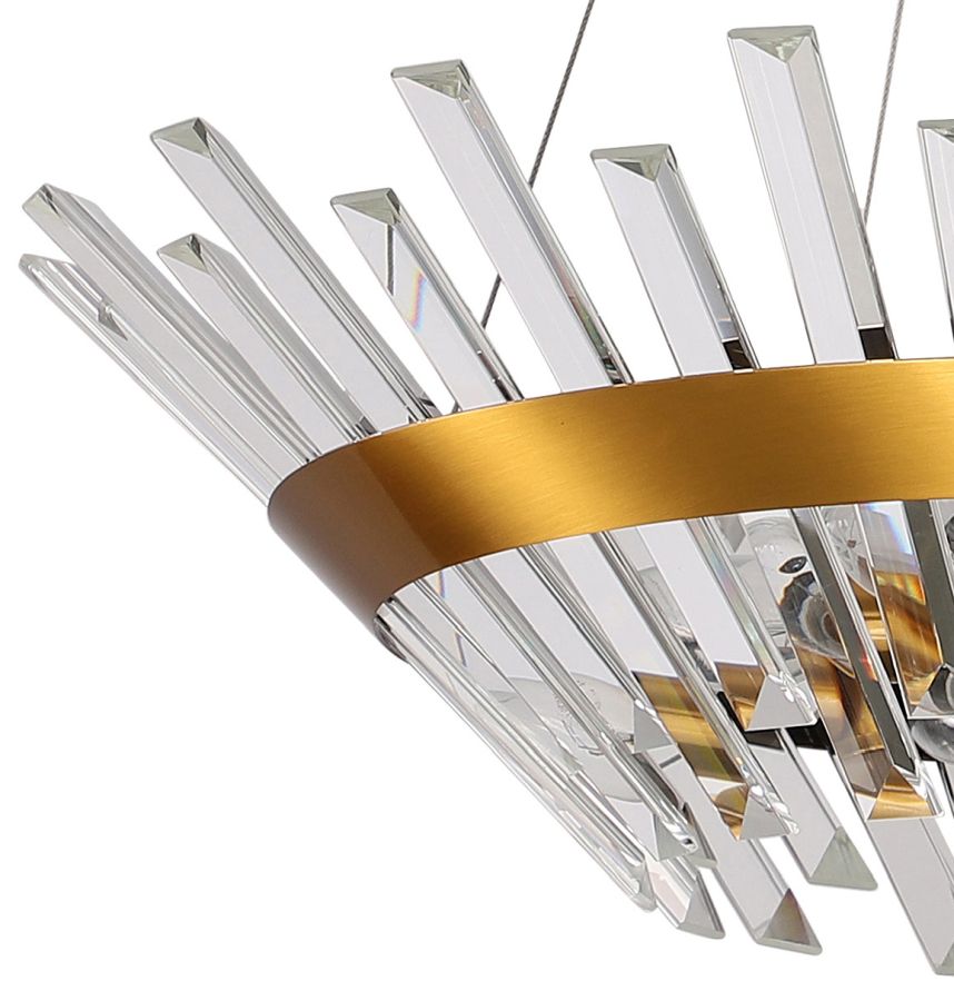 Люстра подвесная из коллекции Snowy выполнена из металла, гальванизированного в цвет бронзы, и декорирована прозрачным хрусталем высшей категории прямоугольной формы разных размеров. Уникальный дизайн придает светильнику элегантность.