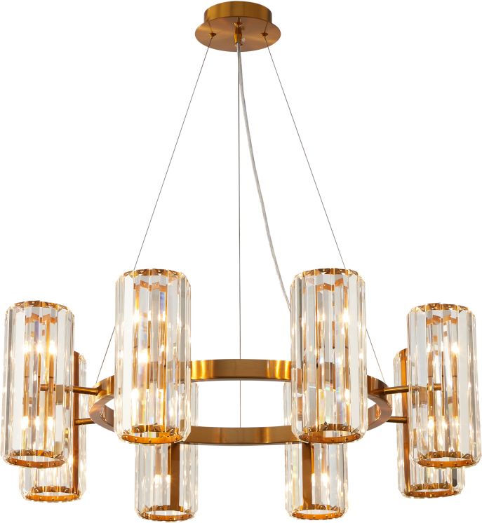 Люстра подвесная из коллекции Twin выполнена из металла, гальванизированного в цвет бронзы, и декорирована плафонами из хрусталя прямоугольной формы. На каждом рожке размещены две лампы, направленные вверх и вниз.