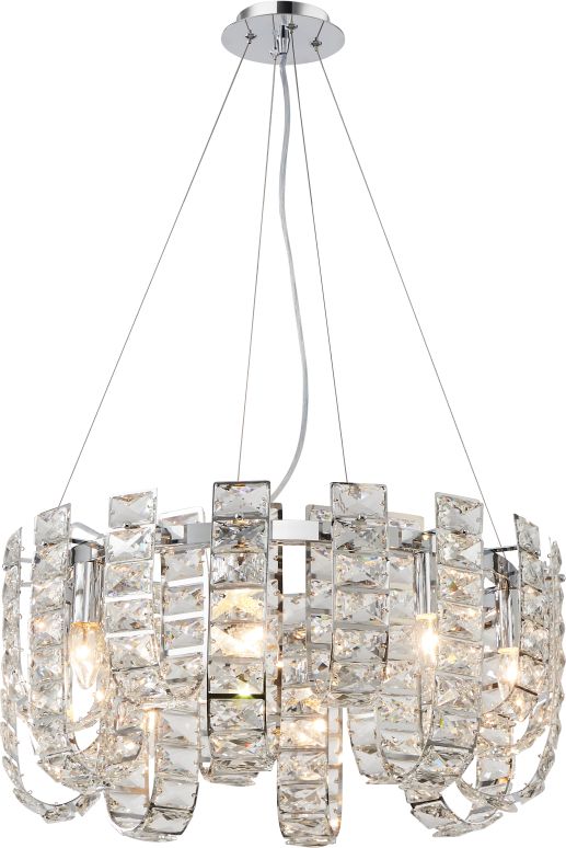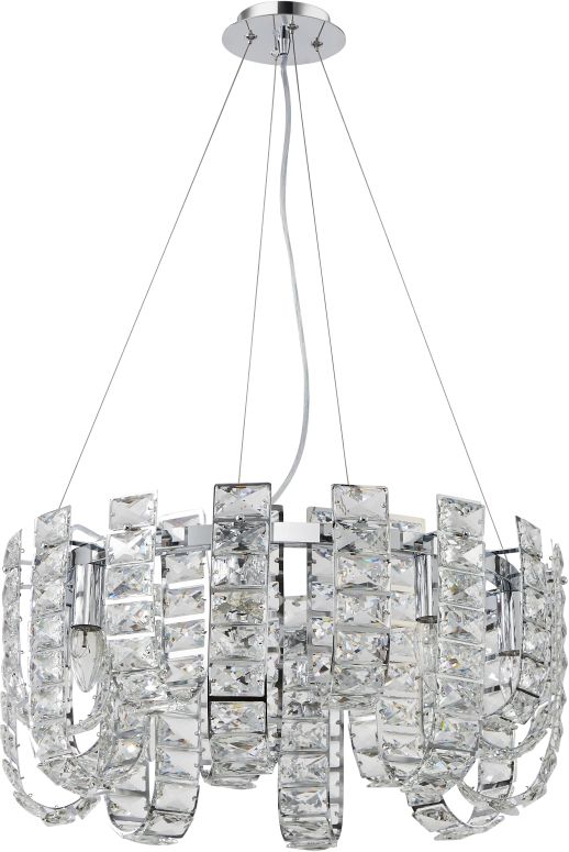 Люстра подвесная из коллекции UMIKO выполнена из металла, гальванизированного в цвет хрома, и декорирована оригинальными элементами из хрусталя высокого качества. Хрусталь квадратной формы собран в стильные подвески овальной формы. Современная форма и высокое качество светильников идеально подойдут как в классические, так и современные интерьеры. Из данной коллекции светильников можно сделать индивидуальный заказ любого цвета и размера.