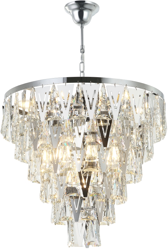 Люстра подвесная из коллекции Vaviani выполнена из металла, гальванизированного в цвет хрома, и декорирована прозрачным хрусталем высшей категории треугольной формы и тонкими треугольниками из нержавеющей стали, отполированной до зеркального блеска и гальванизированной в цвет арматуры. Люстра коллекции выглядит стильно и респектабельно. Премиальное качество и неповторимыи? дизаи?н светильников идеально подои?дут как в классические, так и современные дизайнерские интерьеры.