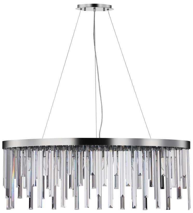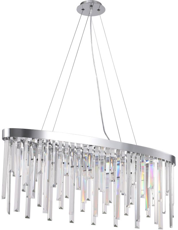 Люстра подвесная из коллекции Venecia вытянутой формы выполнена из металла, гальванизированного в цвет хрома, и декорирована прозрачным хрусталем высшей категории прямоугольной формы разной длины. Современная форма и высокое качество светильников идеально подойдут как в классические, так и современные интерьеры.