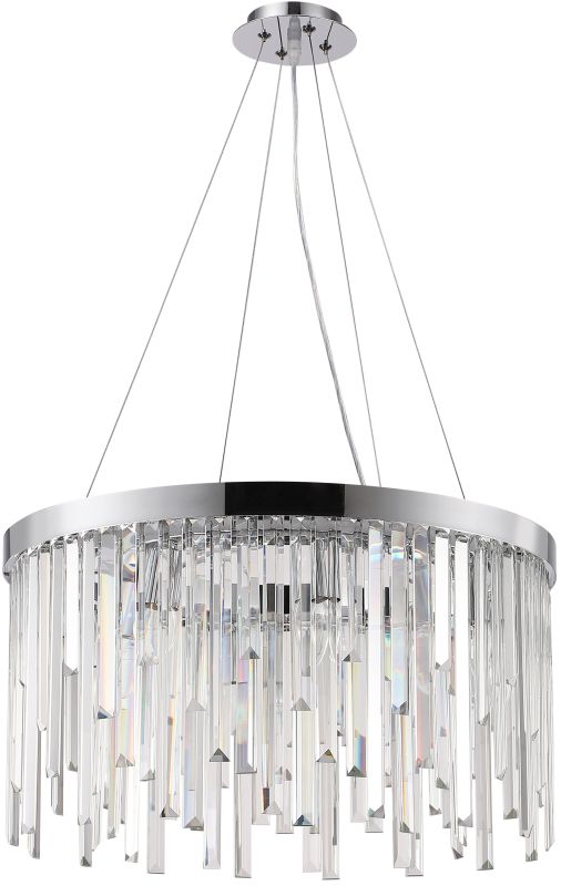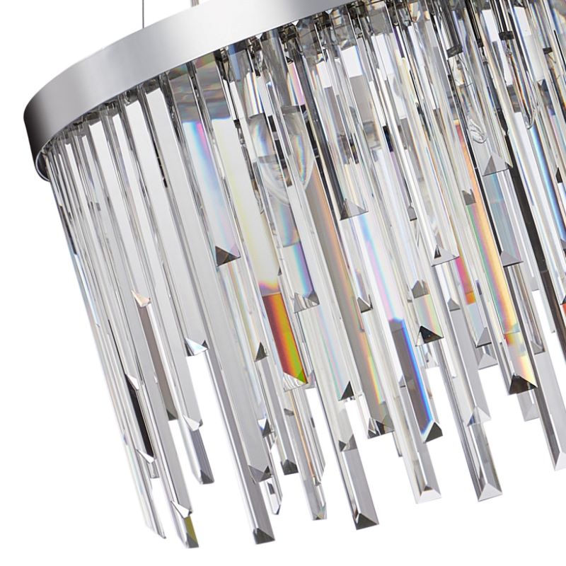 Люстра подвесная из коллекции Venecia выполнена из металла, гальванизированного в цвет хрома, и декорирована прозрачным хрусталем высшей категории прямоугольной формы разной длины. Современная форма и высокое качество светильников идеально подойдут как в классические, так и современные интерьеры.