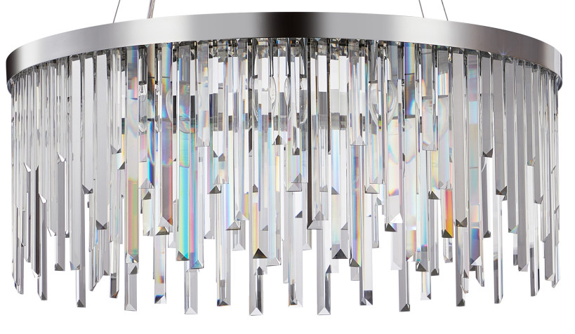 Люстра подвесная из коллекции Venecia выполнена из металла, гальванизированного в цвет хрома, и декорирована прозрачным хрусталем высшей категории прямоугольной формы разной длины. Современная форма и высокое качество светильников идеально подойдут как в классические, так и современные интерьеры.