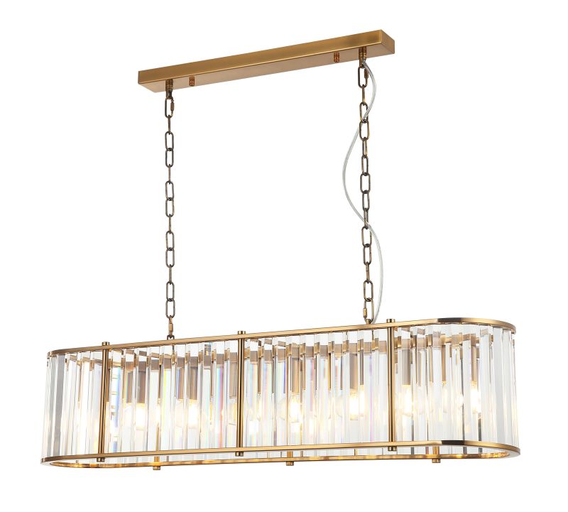 Люстра подвесная вытянутой формы из коллекции Washer выполнена из металла, гальванизированного в цвет бронзы, и декорирована прозрачным хрусталем высшей категории прямоугольной формы. Каркас отделан металлическими кантами и дополнительно закрепленными металлическими стержнями, гальванизированными в цвет арматуры.