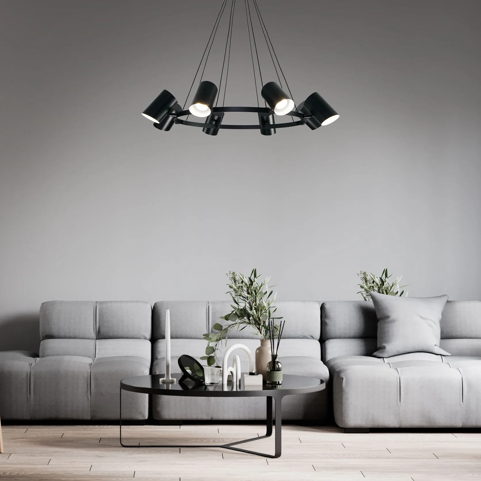 Splay – воплощение функционального геометризма. Правильная форма светильника с многократным повторением плафонов на круглом основании словно аллюзия на сценические прожекторы. Поворотные споты регулируются в двух плоскостях под углом 45 градусов, что позволяет создавать индивидуальные световые сценарии и подсвечивать необходимые элементы в пространстве. Размеры светильника включают несколько модификаций для индивидуального подбора изделия. Оригинальная и стильная коллекция Splay добавит интерьеру актуальной индустриальной эстетики.