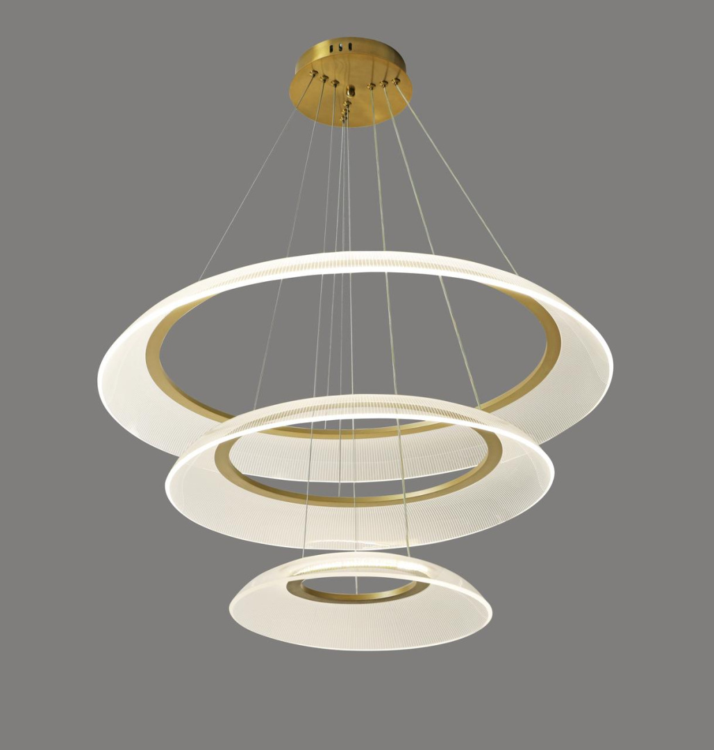 Купить подвесную люстру F1424-26 с доставкой — это отличное решение для тех, кто хочет создать уют и стиль в своем интерьере. Эта люстра идеальна для разнообразных стилей — от неоклассики до модерна, привнося в атмосферу вашего помещения великолепие и элегантность. Диаметр колец: 800+600+400мм. С использованием акрилового материала и нержавеющей стали, данной люстре присуща прочность и долговечность. Легкость установки и возможность выбора различных моделей позволят вам подобрать именно то, что необходимо для вашего дома или офиса. Белые плафоны создают мягкое и уютное освещение, а золотистая арматура привносит элемент роскоши.