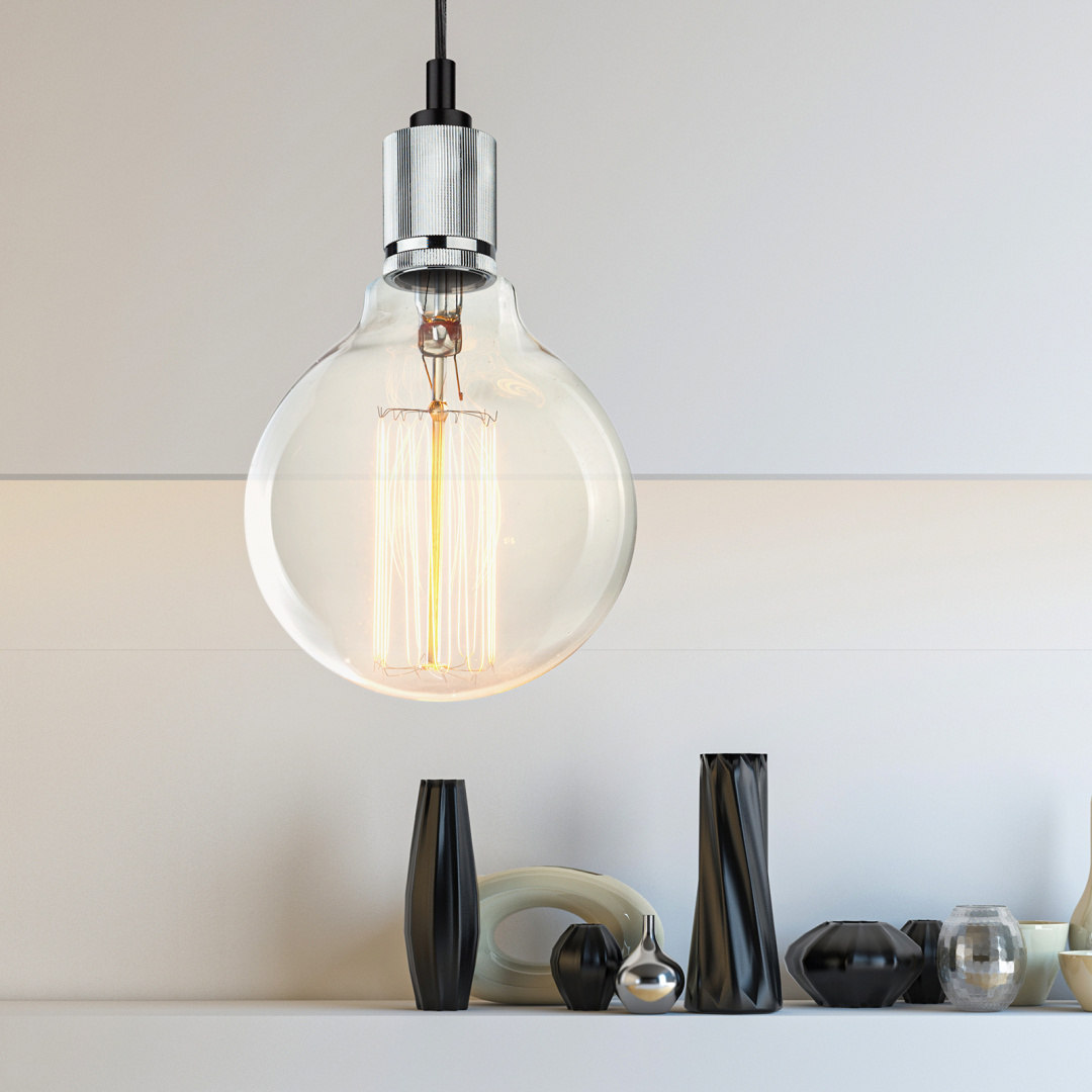 Светильник подвесной PL13 E27 - 8 CH является универсальным источником света, легко монтируется и демонтируется в потолок. Создает неповторимый дизайн и уют в помещении. Подходит для спален, гостинной, столовой и других комнат. Цоколь для источника света E27, напряжение питания 220В ~50/60Гц, материал алюминий, цвет светильника хром, размер плафона H50*D107+1000 длинна провода, максимальная мощность лампы 50 Вт, степень защиты IP20