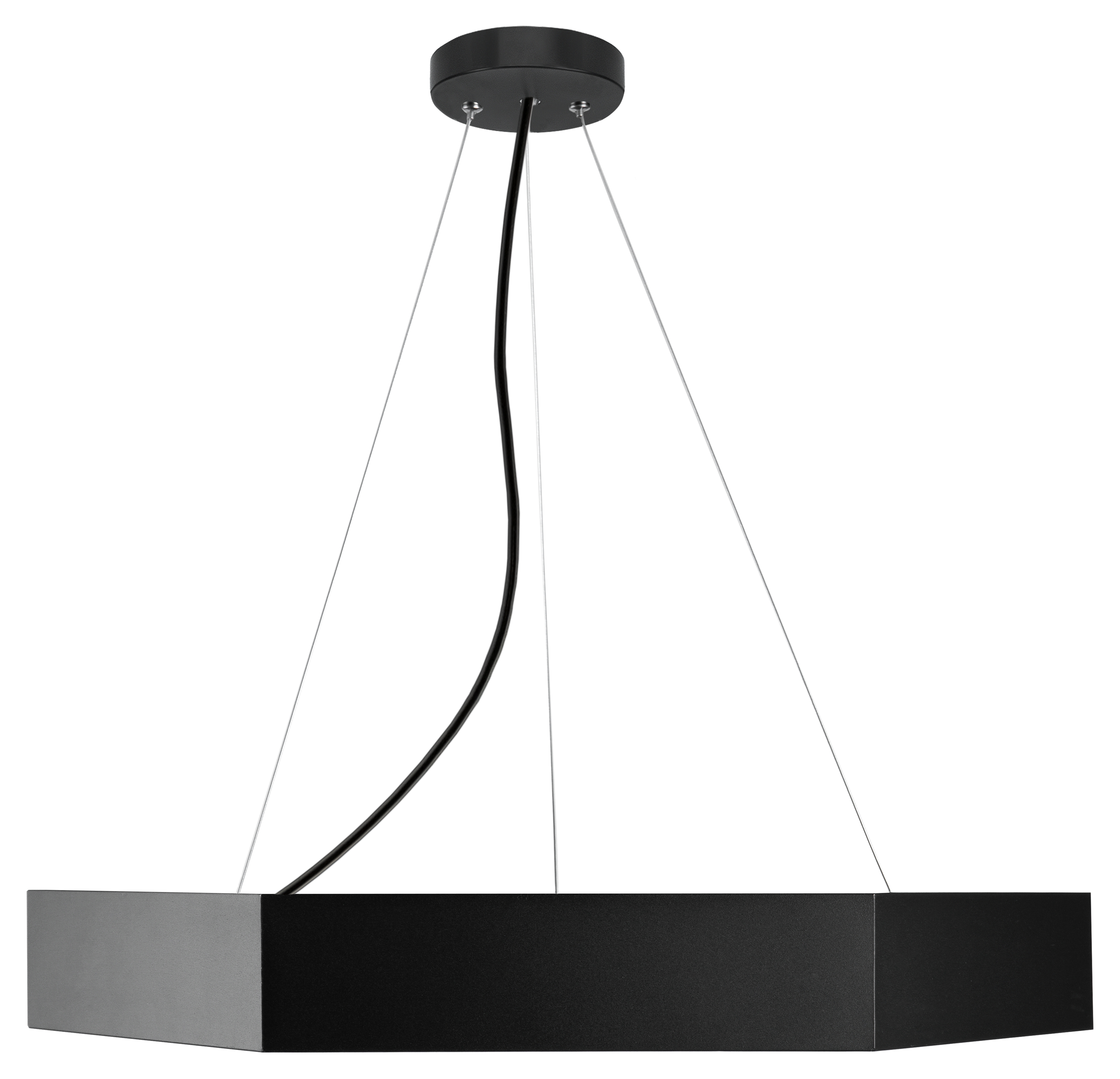 Подвесные светильники "Geometria" различных форм и размеров позволят реализовать дизайнерские идеи освещения пространства. Для каждой модели доступно 2 варианта цвета: белый и черный. Предусмотрена возможность регулировки высоты установки до 1м при помощи троса. В комплект поставки входит круглое крепление к потолку. Подвесная система максимально эстетична, питание подается по отдельному проводу. Корпус изготовлен из стали, покрытой порошковой окраской. Блок питания установлен внутри светильника и входит в комплект.