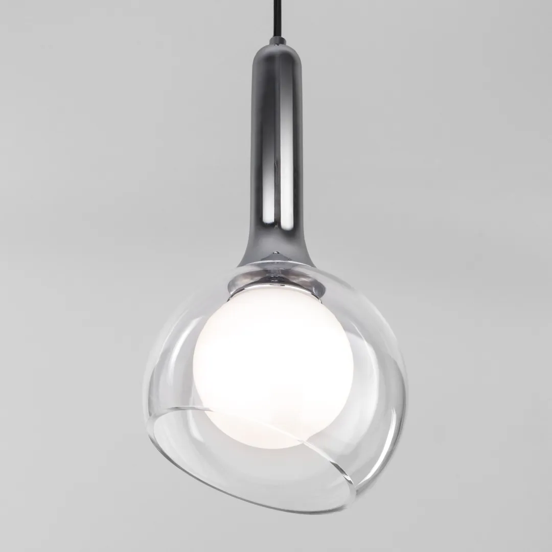 Подвесной светильник со стеклянным плафоном 50188/1 в цвете хром предназначен для создания дополнительного освещения и акцентной подсветки в современных интерьерах. Светильник со сменной лампой G9, которая идет в комплекте, создаст качественное освещение на площади 3 кв.м. и подсветит рабочие зоны на кухне, в гостиной и других местах.