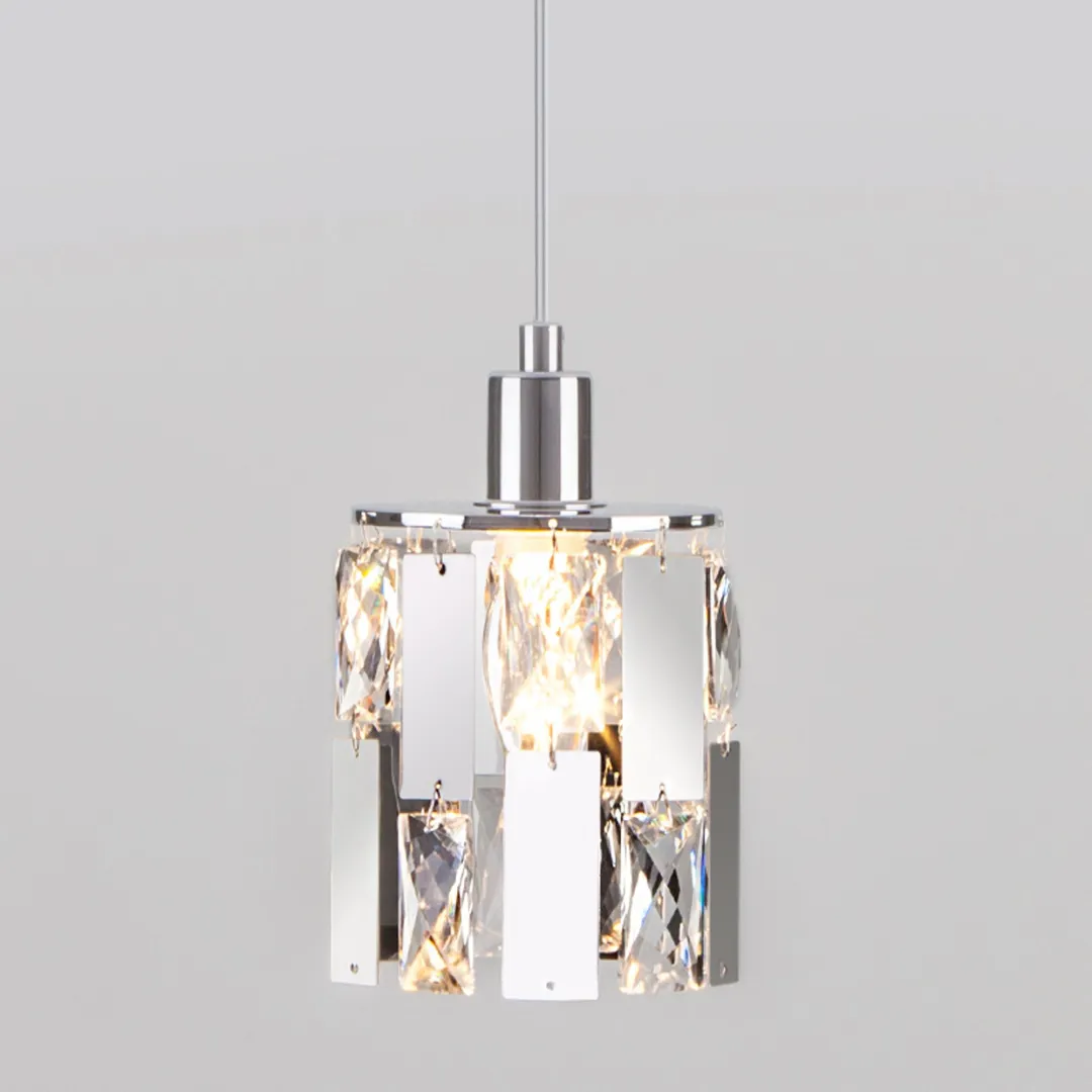 Подвесной светильник с хрусталем 50101/1 в цвете хром предназначен для создания дополнительного освещения и акцентной подсветки в современных интерьерах. Светильник со сменной лампой E14 создаст качественное освещение на площади 4 кв.м. и подсветит рабочие зоны на кухне, в гостиной, в кабинете и других местах.