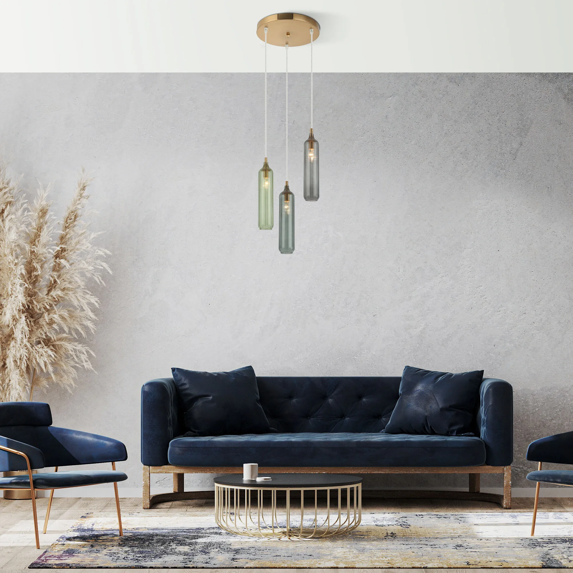 Подвесной светильник Siesta прекрасно подойдет для создания уютной атмосферы. Вытянутые стеклянные плафоны с рифленой фактурой выполнены в трендовых цветах природных оттенков.