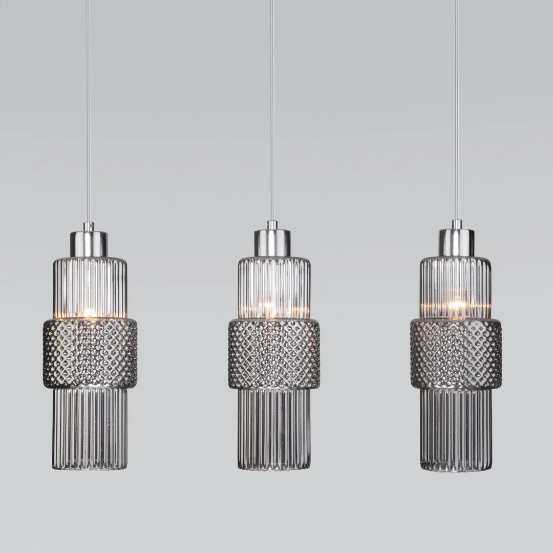 Подвесной светильник со стеклянными плафонами 50209/3 хром предназначен для создания дополнительного освещения и акцентной подсветки в современных интерьерах. Светильник со сменными лампами E27 создаст качественное освещение на площади 6 кв.м. и подсветит рабочие зоны на кухне, спальне и других местах.