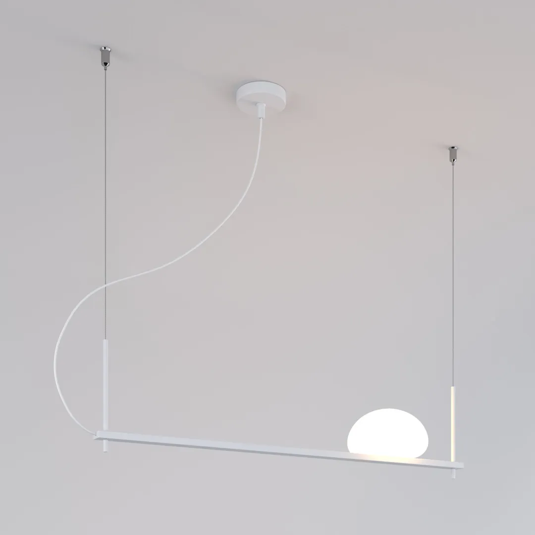 Светильник со стеклянным плафоном оборудован системой регулировки высоты подвеса, позволяющей размещать изделие на разных уровнях, уменьшая или увеличивая угол рассеивания светового потока. Подвесной светильник просто устанавливается на натяжных потолках при помощи монтажной планки.